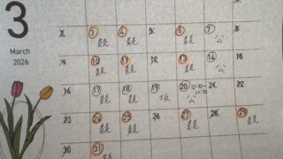 こんにちは😃3月のスケジュールを送付させていただきます🌸3/20祝日は、10:30-12:30となります。よろしくお願いいたします🙇♀️